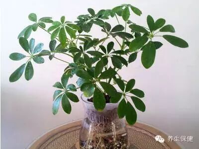 功效:鸭脚木的叶子可吸收尼古丁和其他有害物质,并通过光合作用将其转化为无害的自身物质,因此适合摆放在书房、卧室、客厅、阳台。