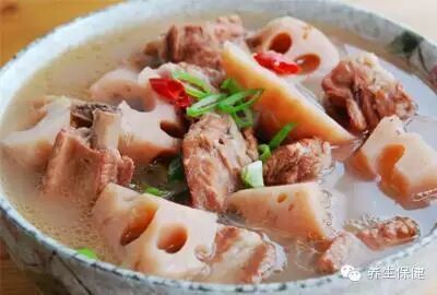 5.把莲藕、排骨及汤汁一起倒进砂锅,再炖30分钟,拣出生姜、香葱不用,放精盐、胡椒、味精即可。