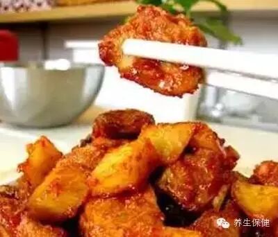 1.将马铃薯去皮,切成菱形,用七成热油炸至金黄色捞起待用。