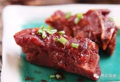1.猪排洗净后砍成7厘米左右长的段,入沸水断生后立即捞出,控干水分。