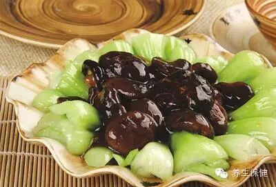 选新鲜塔菜洗净,剥去老叶,一棵塔菜切成4-6片。水发冬菇洗净,去蒂,斜批成片。