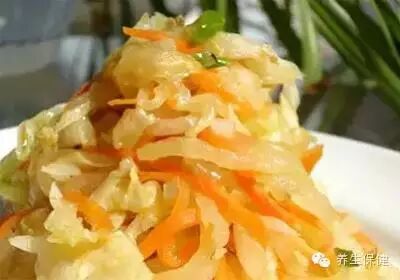 做法:白菜、胡萝卜洗净修好切细丝,葱切丝,再同盐、醋、酱油、五香面、辣椒油一起调拌均匀,即可食用。