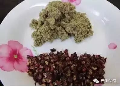 将花椒用家用的料理机研磨粉碎或放到石臼中捣碎装瓶备用,然后挑大约一元硬币大小的艾叶放在手心,两手对搓,不怎么费力就成了艾绒了(也有师兄建议直接买艾条,里面的就是艾绒,但那个艾绒是不纯的,还是动动手自已搓吧!),然后挑出里面像茶叶梗那样的东西。