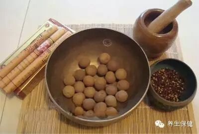 其实用不着那个,我教你们,年纪大的都可以用,比较保险。用桂圆肉一颗(新鲜的叫龙眼,干的叫桂圆),花椒六、七颗,加上那个艾绒一同打烂,晚上睡觉的时候挑一点点,小指甲面那么大,放在肚脐里就行了。