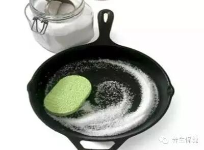 5.盐可以有效清洁生铁锅,用干海绵和一些散盐,就可以让你的锅立马变新