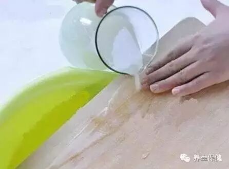 切过牛、羊肉的菜板和菜刀,用淘米水洗刷,能除去腥臭味。