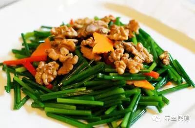 早在《方脉正宗》中记载的有个韭菜炒胡桃的食疗方子,这胡桃仁与韭菜同用,甘辛温润,补肾助阳的作用会更好,可用于肾虚阳痿,腰酸尿频等。这药膳如何做呢?先将核桃仁30g去皮,以脂麻油炒微黄,放入适量食盐,后放入韭菜120g,炒熟即可食用。