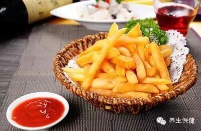 贴士:最好不要偷懒用超市卖的现成冷冻薯条,因为只有土豆切出来的新鲜薯条才会酥软可口。可以根据个人喜好加入番茄酱。