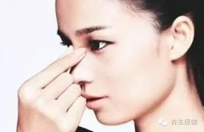 ②两手食指指端按揉同侧攒竹穴(眉毛内侧边缘凹陷处)3次;
