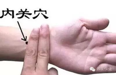 内关穴位于手腕正中,距离腕横纹约三横指(三个手指并拢的宽度)处,在两筋之间取穴。