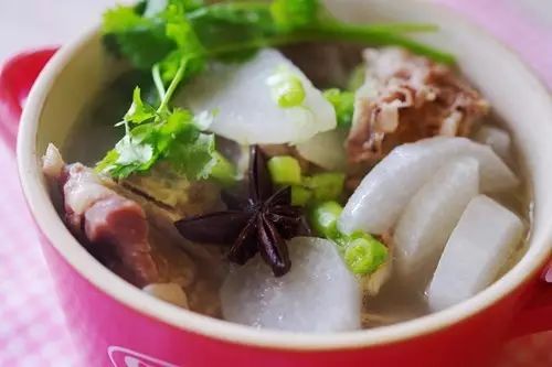 将萝卜切丁后和羊肉搅拌成馅料,用手抓成丸子状。将萝卜羊肉丸子煮汤喝,一周吃2~3次,能起到很好的驱寒滋补的效果。