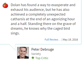 《Variety》的记者认为,虽然影片的前九十分钟难以忍受,但多兰懂得「笼中鸟为何歌唱」。