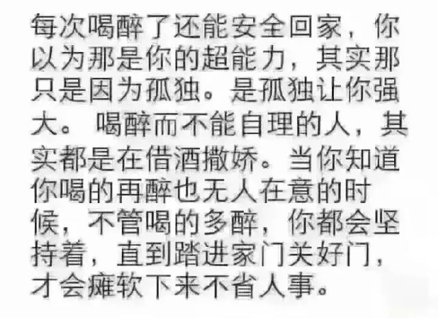 但是记住了对自己好一点,喝醉了难受的是你!宿醉还要早起上班的人是你!做丢人事的是你!而且丢人的事,第一个被传开的TMD还是你!