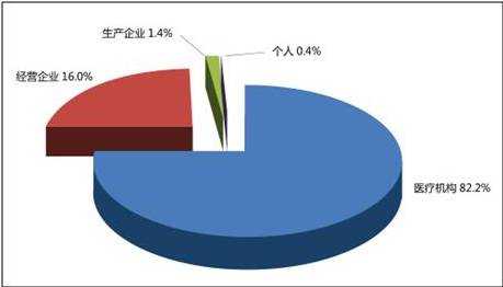 按报告来源统计,医疗机构的报告占82.2%、药品经营企业的报告占16%、药品生产企业的报告占1.4%、个人及其他来源的报告占0.4%。2015年医疗机构依然是报告的主要来源;生产企业的报告数量仍然偏低,但在报告数量排名前30位的生产企业中,国内企业数量增幅明显。
