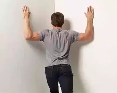 找一个凸出的墙角,将你一侧的手臂水平搭扶墙上,转动、前倾身体,将搭扶墙壁一侧手臂向后延伸,使拉伸一侧胸部有明显拉伸感,配合呼吸,呼气时缓慢将胸部向前推出,保持30秒,休息,重复进行3次,换另一侧进行。严禁使用弹震式拉伸。