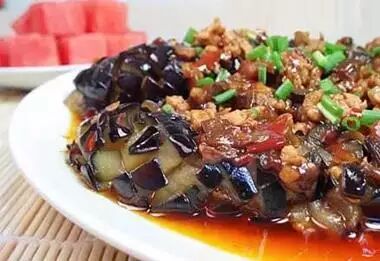 2.热锅油热后放入茄子,小火慢煎至茄子微软后盛出;