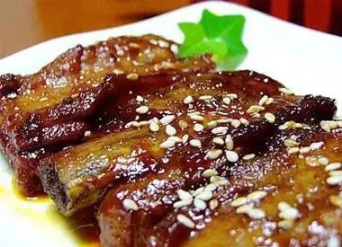 6.待油锅内汤汁粘稠时,排骨入锅翻炒至挂汁后,撒熟芝麻关火。