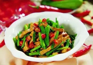 材料:韭菜一小把,香干6块,红椒一个,油适量,盐少许,生抽数滴。