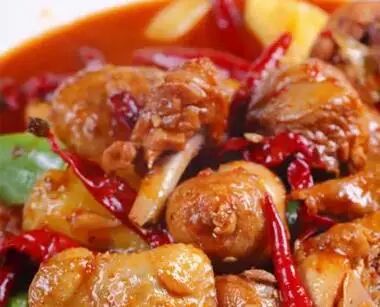 1.将鸡洗净后切成2-3cm的小块,加入料酒、盐拌匀,腌制20分钟;