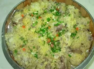 7.再倒入小米排骨,上笼蒸40分钟左右即可。