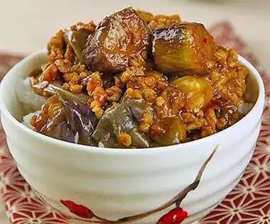 4.将茄子放入炒匀,加料酒,白糖、生抽、倒入清水焖煮一会,调入辣椒油、花椒油,待汤汁收干,撒上葱花即可。