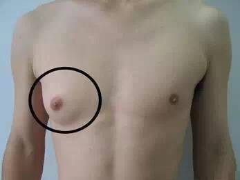 海带中大量的碘可以刺激垂体,使女性体内雌激素水平降低,恢复卵巢的正常机能,纠正内分泌失调,消除乳腺增生的隐患;别以为只有女性会乳腺增生,下图就是男性的乳腺增生。