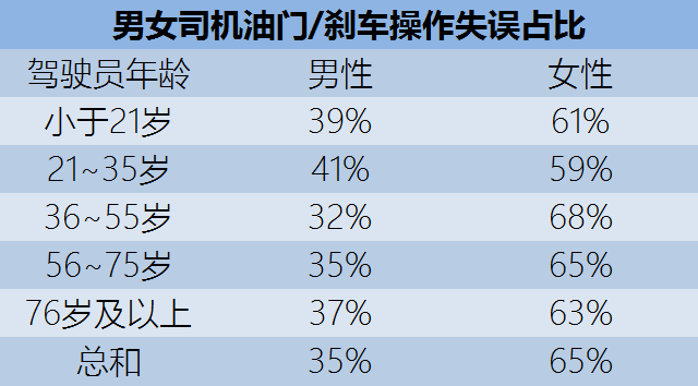 在美国,每个月都有7~15起因刹车/油门操作失误导致的事故(这是政府掌握的数据,实际事故数量可能比这个多),其中三分之二(65%)的事故需要“女司机来负责”。