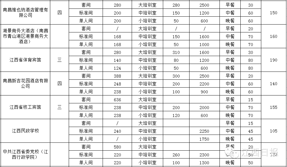 其中,党政机关会议定点场所主要包括江西饭店、南昌前湖宾馆等69家,党政机关培训推荐场所主要包括省委滨江招待所、省交通干部学院等41家。