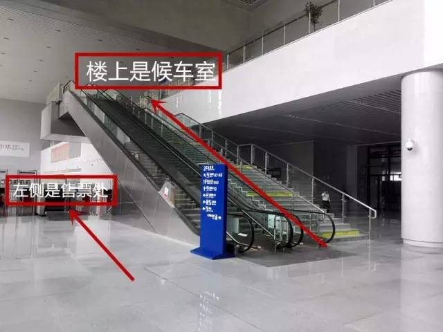 ↑↑↑通过进站大厅电梯两侧验证、安检查危口,然后可以从两边的电梯上楼进入候车室。