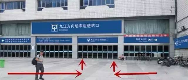 ↑↑↑乘坐九江动车组的旅客进站改为从进站口北侧原九江动车候车室(行包房旁)的大门进入。
