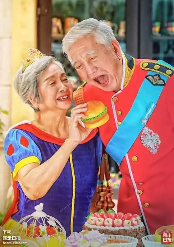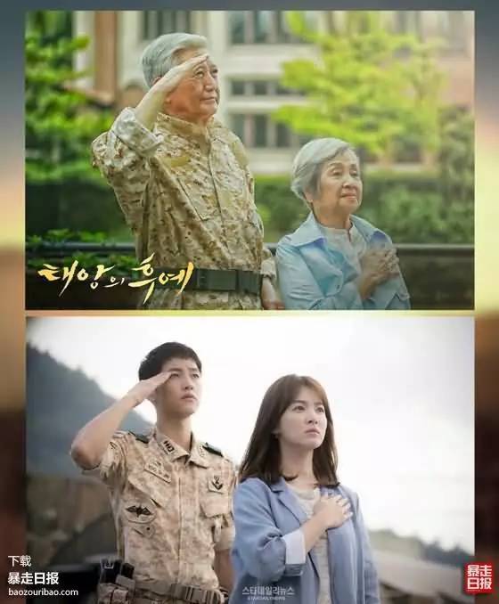 两位老人还cos了当下大热的韩剧《太阳的后裔》