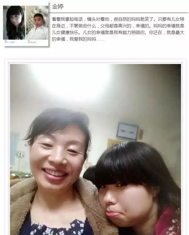金婷:看着我拿起电话,镜头对着他,很自然的妈妈就笑了。只要有儿女陪在身边,不管做些什么,父母都是高兴的,幸福的。