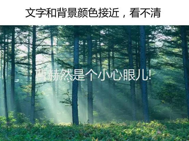 但是曹赫然这个名字你是不是需要费很大劲才能看清楚,如果听众在听课期间看见这样一个内容,那肯定是瞪大眼睛去看文字,会分散对于讲者的注意力,这是最要不得的事情。