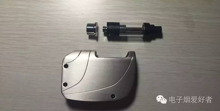 下面咱们再来说下这款套装里的雾化器,这款雾化器结构十分简单,大致可分为底座,雾化芯,玻璃仓,顶盖与滴嘴。