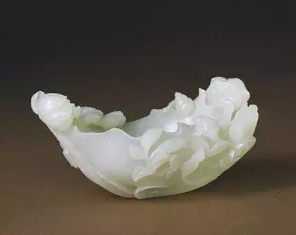 6、青玉把莲水虫荷叶洗,清,高7.1cm,口径8.7-11cm。清宫旧藏
