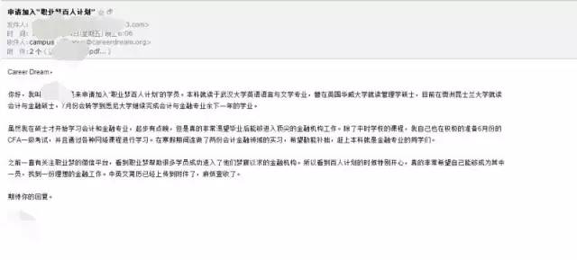 “职业梦百人计划”是专注于金融垂直领域的职业梦创立的针对于在校大学生的公益计划,我们希望将富有潜力并致力于投身金融行业的在校大学生,培养成为具有国际眼光与领导力的金融人才。