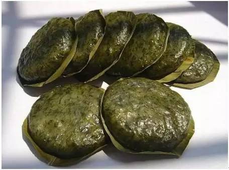 7、全部包好后,给每一个艾粄垫上一片叶子