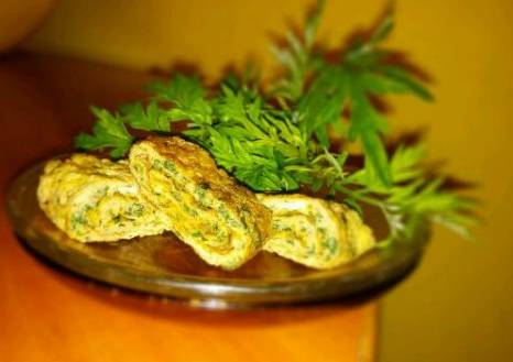 食材:艾叶,蛋3个,盐,麻油,胡椒粉。