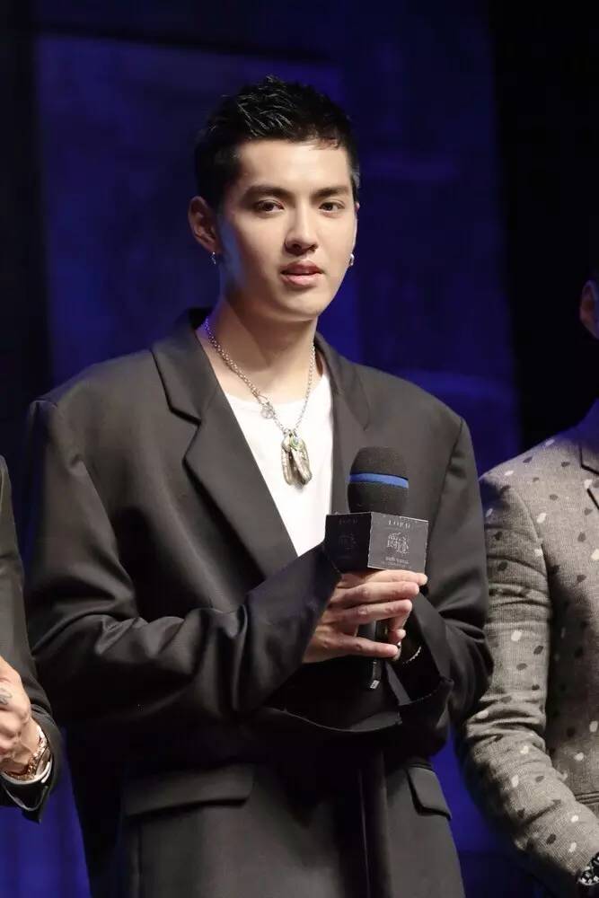 吴亦凡一上台,我们秒懂台下粉丝无处安放的尖叫声。oversize风衣配搭羽毛项链巴掌脸,脸小个高是王道。