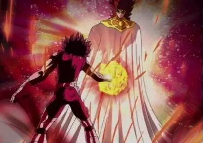 (《圣斗士星矢天界篇》中遍体鳞伤的星矢挑战太阳神....)